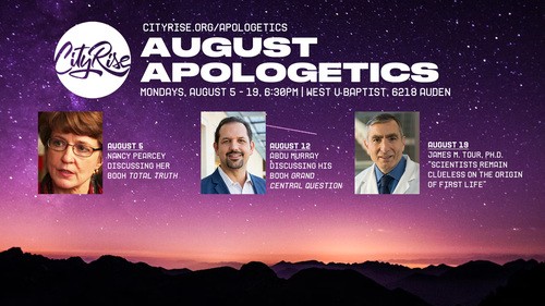 The final night of August Apologetics is this coming Monday, August 19 at 6:30P at our West U Baptist campus. This last session will be very popular as Dr. James Tour presents the topic “Scientists Remain Clueless on the Origin of First Life.” This is a can’t miss opportunity, so invite your family, friends, and neighbors to attend with you.
