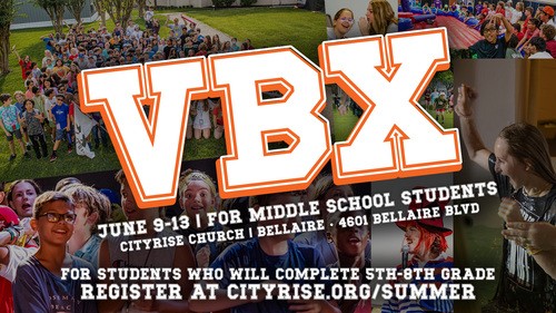 For those going into 6th-9th grade in the fall, VBX will take over our Bellaire campus! It will be a week packed with worship, Bible study, and lots of fun and games, too. Plus, it’s a bargain at only $60. You can register for VBX online here, or we will have walk-up registrations all next week as well.