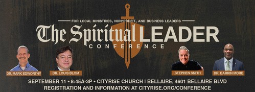 Speaking of lifting each other up, we're excited about our annual CityRise Network Leadership Conference on Thursday, September 11. This year's theme is "The Spiritual Leader," and we're inviting all leaders of local ministries, non-profits, and businesses to join us as we worship, share lunch, and learn from incredible speakers including Stephen Smith (CEO and Lead Strategist of Aerable), Dr. Louis Blom (President of Judea Harvest), and Dr. Darrin Moore (Pastor of Truevine Missionary Baptist Church). Our own Dr. Mark Edworthy, CityRise Network Director and Missouri City Campus Pastor, will also be speaking.