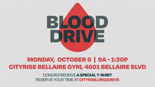 PS Don’t forget about another direct and simple way you can serve: our latest Blood Drive this Monday, October 6 at CityRise Bellaire. You can schedule your donation time easily right now online.