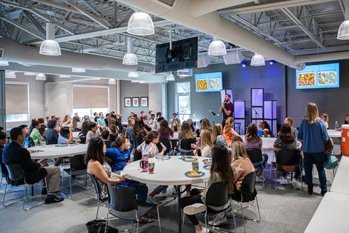Community Groups meet weekly at church and focus on diving into the scripture in a large group gathering.